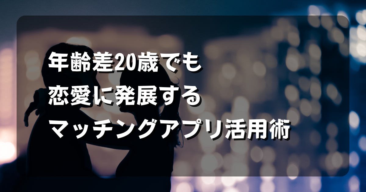 この記事では、特に年齢差が20歳程度ある関係を望む方向けに、マッチングアプリの選び方から実際のコミュニケーション方法まで、具体的な活用術をご紹介します。
